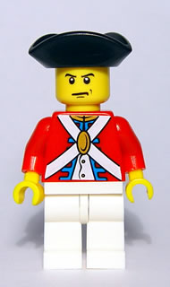 Torso Imperial Soldier Uniform Jacket with Blue and Gold Trim over White Shirt with Buttons, Crossbelts with Oval Clasp, Dark Brown Ammo Pouch on Back Pattern (Redcoat) / Red Arms / Yellow Hands |