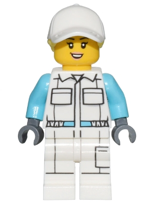 Electric Scooter Attendant - Female, White Jumpsuit with Pockets, White Legs with Pocket, White Cap with Bright Light Yellow Ponytail Hair |