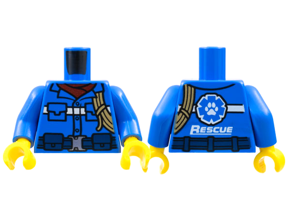 Torso Blue and Dark Blue Vest with Pockets and White Stripe over Shirt with Collar, Undershirt, Paw Print Logo and 'RESCUE' on Back Pattern / Tan Arms / Yellow Hands |