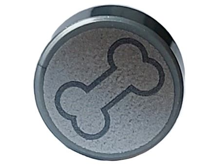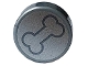 Tile, Round 1 x 1 with Dark Bluish Gray Outlined Bone on Metallic Silver Background Pattern |