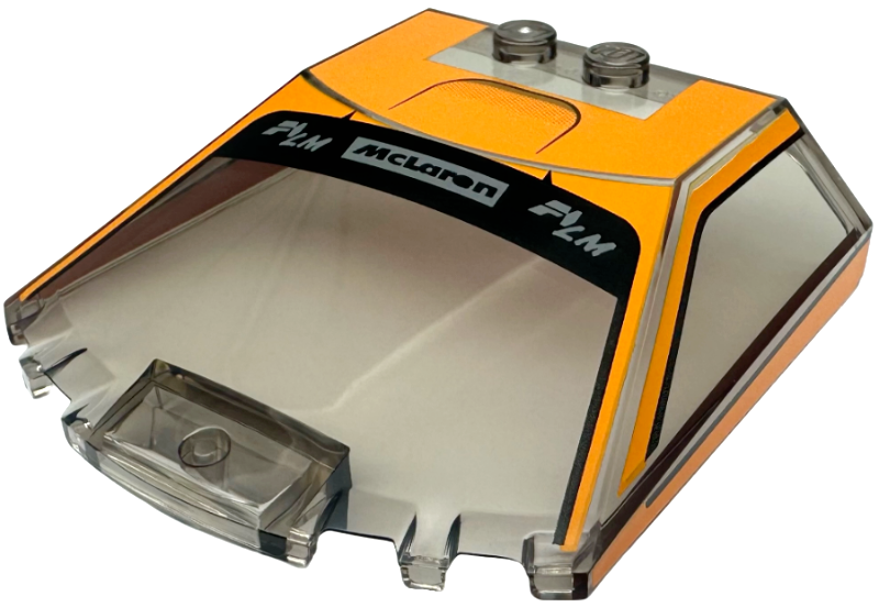 Windscreen 6 x 6 x 1 1/3 Straight Sides with Orange and Black Window Frame Outline, Roof, and 'LM' and 'McLaren' Pattern |