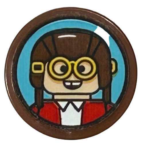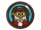 Tile, Round 1 x 1 with Dark Blue Compass Rose and Red Needle Pattern |