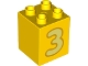 Duplo, Brick 2 x 2 x 2 with Bright Light Yellow Number 3 with Bright Light Orange Outline Pattern |