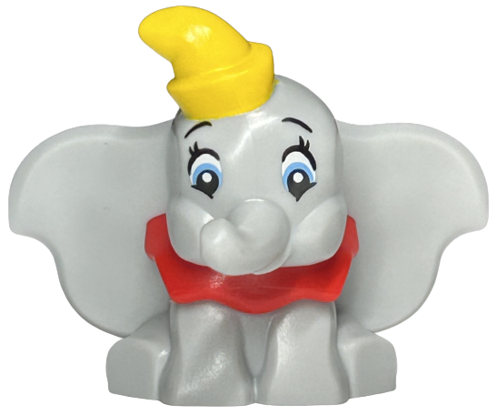 Elephant, Big Ears, Sitting with Molded Red Collar and Bottom Tube and Printed Yellow Hat, Medium Blue and White Eyes, Black Eyebrows and Eyelashes Pattern (Disney Dumbo) |