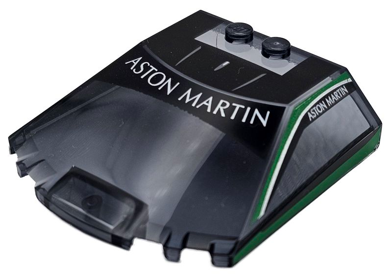 Windscreen 6 x 6 x 1 1/3 Straight Sides with Black Panels, Green Side Window Frames, White 'ASTON MARTIN' and Silver Stripes Pattern |