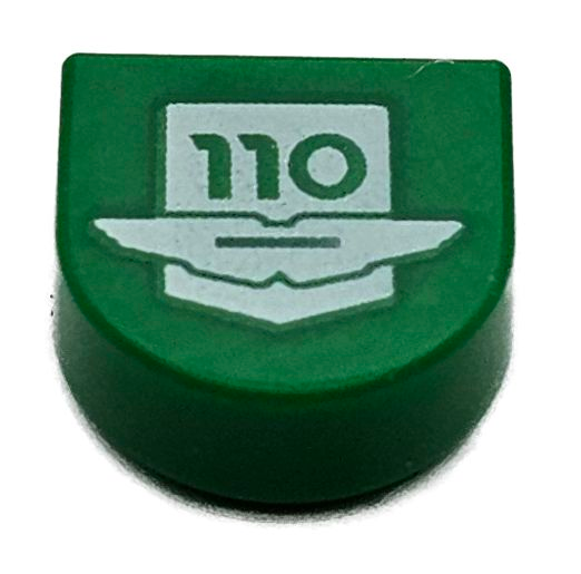 Tile, Round 1 x 1 Half Circle Extended with White Aston Martin Logo and '110' Pattern |