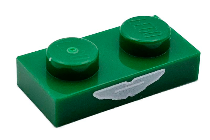 Plate 1 x 2 with White and Silver Aston Martin Logo Pattern |