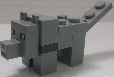 Tile 2 x 3 with Pixelated Wolf Head with Black Eyes and Nose, Dark Bluish Gray and White Fur on Blue Background Pattern (Minecraft Wolf Tamer Shield) |