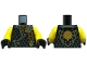 Torso Tunic with Dark Bluish Gray Hems, Gold Trim, Dark Orange Shirt, Ninjago Logogram 'MOE', Letter C on Back Pattern / Yellow Arms / Black Hands |