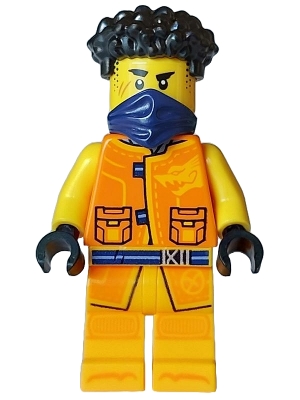 Tile, Round 2 x 2 with Bottom Stud Holder with Gold Ninjago Logogram 'T OF S' and Blades / Drops in Dark Blue Circle with Dark Orange Edge Pattern |