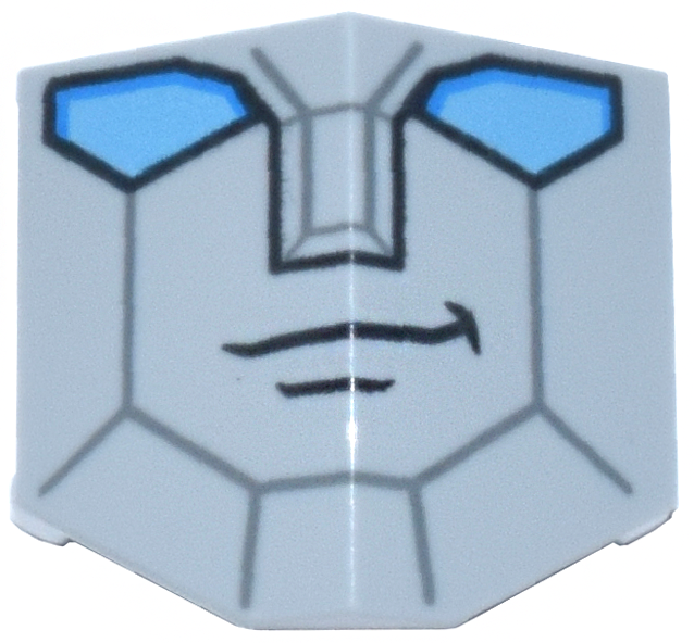 Slope, Curved 33 2 x 2 Double / Inverted with Dark Bluish Gray Lines, Dark Azure and Medium Blue Eyes, and Black Grin and Chin Dimple Pattern (Transformers Bumblebee Face) |