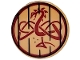 Tile, Round 2 x 2 with Bottom Stud Holder with Dark Brown Border and Bars and Dark Red Dragon Pattern |