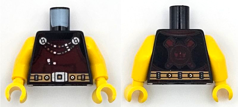 Torso Viking Tunic with Tan Collar, Reddish Brown Belts and Pouches, Silver Buttons, Deer Head on Back Pattern / Dark Green Arms / Yellow Hands |