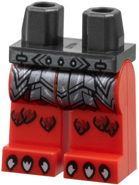 Torso Dark Silver Segmented Armor with Sharp Plates, Rivets and Silver Scratches over Dark Red Scales, Reddish Brown Thick Rope Belt Pattern / Red Arms / Black Hands |